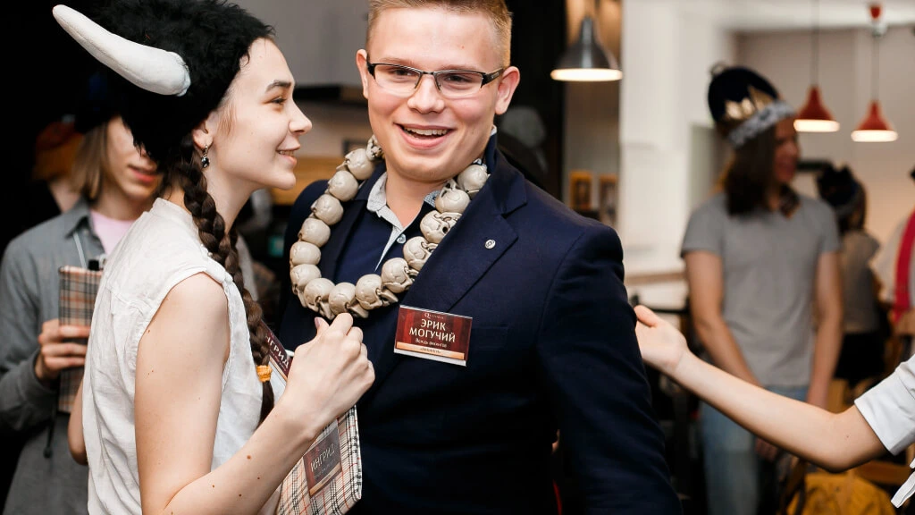 Квест на выпускной «Ночь в музее»: «Эрик, малыш, понравился ли тебе новое ожерелье, которое я тебе подарила? — Спасибо, тетушка, он великолепен. Только размер черепов маловат.»